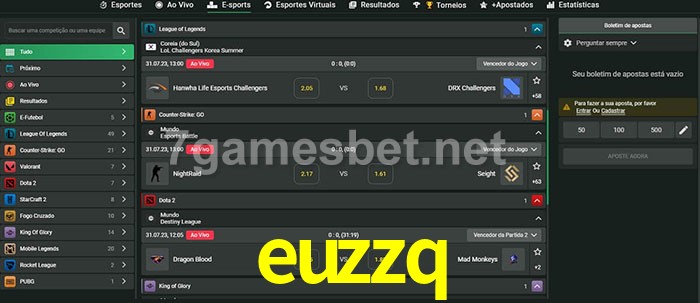 A aposta euzzq oferece aos jogadores a experiência mais conveniente de apostas em eSports!